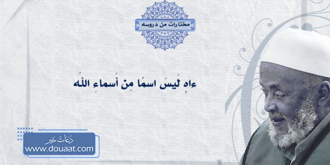 فإَن قيلَ إنَّ الدَّليلَ على أَنَّ “ءاه” مِن أَسماءِ اللهِ قَولُهُ تَعالى ﴿إِنَّ إبراهيمَ لأَوَّاهٌ حَليمٌ﴾ [سورة التوبة/ءاية114] فَالجوابُ أَنَّ الأَوَّاهُ مَعناهُ الرَّحيمُ كَما قالَ عَبدُ اللهِ بنُ مَسعودٍ رَضِيَ اللهُ عَنهُ، والمعنى أَنَّ إِبراهيمَ عَليهِ السَّلامُ شَديدُ الرَّحمةِ لِعِبادِ اللهِ، ولَيسَ مَعناهُ أَنَّهُ كانَ يَقولُ “ءاه”، لَكنَّ بَعضَ المحرِّفينَ الّذينَ يجهَلونَ لُغَةَ العَرَبِ قالوا: “الأوَّاه” مَعناهُ قولُ ءاه ءاه، وهَذا جَهْلٌ مِنهُم بِلُغَةِ العَرَبِ.
