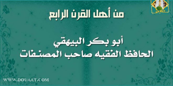 هو الإمام الكبير الفقيه الحافظ الأصولي النحرير الزاهد الورع الشيخ أبو بكر أحمد بن الحسين بن علي بن عبد الله بن موسى البيهقي الخُسرَوْجردي (نسبة إلى خُسْرَوْجِرد القرية التي ولد فيها). أخذ علم الأصول على مذهب الإمام الأشعري واشتغل بالتأليف فكثرت مصنفاته وصار أوحد زمانه في الحديث والفهم والقريحة والزهد.