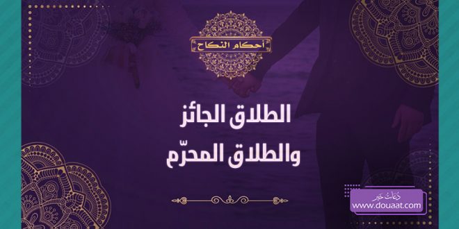 نتكلم الآن عن تقسيم الطلاق بشكل ءاخر، ما هو الطلاق المحرم وما هو الطلاق الجائز. فى بعض النسخ هذا فصل مستقل وفى بعضها هذا فصل تابع للفصل الذي قبلَه. فى أغلب النسخ هذا غيرُ معدودٍ فصلاً مستقلاً. عند تقسيم الطلاق من حيث الجوازُ وعدمُه، منهم من يقسِّم فيقول الطلاق منه سنىّ ومنه بدعىّ ومنه لا سنىّ ولا بدعىّ وأحياناً يُختصر بقولهم منه لا ولا، لا ولا يعنى لا سنىّ ولا بدعىّ. والمراد بالطلاق السني: الطلاق الجائز وليس المراد بالسنىّ أن فيه ثوابًا، لا، إنما فى أحيان يكون فيه ثواب وفى أحيان لا يكون فيه ثواب، أما البدعىّ فالمراد به المحرَّم، وأما الذي يقال له لا ولا فليس محرَّمًا.