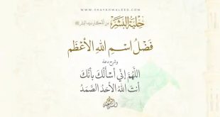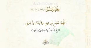 وأشهد أنَّ محمدًا عبده ورسولهُ أفضلُ الأنبياءِ الأطهارِ، صلَّى الله عليه وعلى أبي بكر رفيقِه في الْغَار، وعلى عُمرَ قامِع الكُفَّار، وعلى عثمانَ شهيدِ الدَّار، وعلى عليٍّ القائمِ بالأسْحار، وعلى آلِهِ وأصْحابهِ خصوصًا المهاجرينَ والأنْصار، اللَّهُمَّ ءَاتِنَا فِي الدُّنْيَا حَسَنَةً وَفِى الآخِرَةِ حَسَنَةً وَقِنَا عَذَابَ النَّارِ.