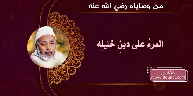 قالَ رسولُ اللَّهِ صلَّى اللَّهُ عليه وسلَّم: “المرءُ على دينِ خليلِهِ فليَنظُرْ أحدُكُم من يُخَالِلُ” معناهُ انتقوا واختارُوا مَن تتّخذونَهُ خليلاً أي صَديقًا، مَن كانَ ينفعُكُم لدينِكُم فعليكُم بِمصادقتِهِ ومَن لا ينفعُكُم في دينِكُم بلْ يضرُّكُم فابتعدُوا عنهُ، أي لا تصادقُوهُ.