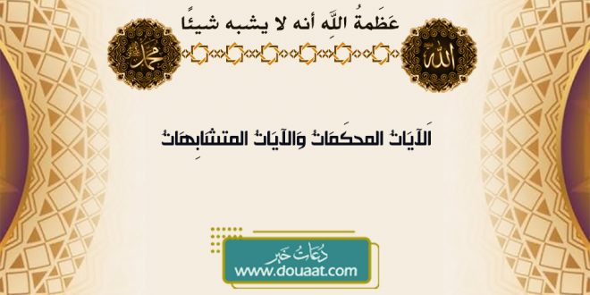 يقول الله تعالى في القرءانِ الكريم: ﴿هو الذي أنزلَ عليك الكتابَ منه ءاياتٌ محكماتٌ هنَّ أمُّ الكتابِ وأُخرُ متشابهاتٌ فأما الذين في قلوبِهم زيغٌ فيتَّبِعونَ ما تشابهَ منه ابتغاءَ الفتنةِ وابتغاءَ تأويلِه وما يعلمُ تأويلَه إلا اللهُ والراسخونَ في العلمِ يقولونَ ءامنَّا بهِ كلٌّ من عندِ ربِّنا وما يذَّكَّرُ إلا أولوا الألباب﴾.
