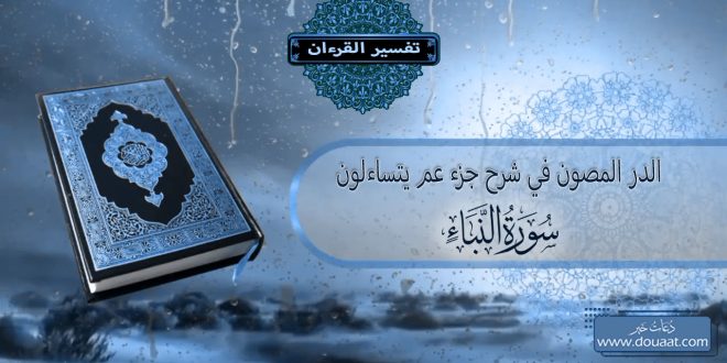 عَمَّ يَتَسَاءَلُونَ (1) عَنِ النَّبَإِ الْعَظِيمِ (2) الَّذِي هُمْ فِيهِ مُخْتَلِفُونَ (3) كَلَّا سَيَعْلَمُونَ (4) ثُمَّ كَلَّا سَيَعْلَمُونَ (5) أَلَمْ نَجْعَلِ الأَرْضَ مِهَادًا (6) وَالْجِبَالَ أَوْتَادًا (7) وَخَلَقْنَاكُمْ أَزْوَاجًا (8) وَجَعَلْنَا نَوْمَكُمْ سُبَاتًا (9) وَجَعَلْنَا اللَّيْلَ لِبَاسًا (10) وَجَعَلْنَا النَّهَارَ مَعَاشًا (11) وَبَنَيْنَا فَوْقَكُمْ سَبْعًا شِدَادًا (12) وَجَعَلْنَا سِرَاجًا وَهَّاجًا (13) وَأَنزَلْنَا مِنَ الْمُعْصِرَاتِ مَاءً ثَجَّاجًا (14) لِّنُخْرِجَ بِهِ حَبًّا وَنَبَاتًا (15) وَجَنَّاتٍ أَلْفَافًا (16) إِنَّ يَوْمَ الْفَصْلِ كَانَ مِيقَاتًا (17) يَوْمَ يُنْفَخُ فِي الصُّورِ فَتَأْتُونَ أَفْوَاجًا (18) وَفُتِحَتِ السَّمَاءُ فَكَانَتْ أَبْوَابًا (19) وَسُيِّرَتِ الْجِبَالُ فَكَانَتْ سَرَابًا (20) إِنَّ جَهَنَّمَ كَانَتْ مِرْصَادًا (21) لِّلطَّاغِينَ مَآبًا (22) لَّابِثِينَ فِيهَا أَحْقَابًا (23) لَّا يَذُوقُونَ فِيهَا بَرْدًا وَلا شَرَابًا (24) إِلَّا حَمِيمًا وَغَسَّاقًا (25) جَزَاءً وِفَاقًا (26) إِنَّهُمْ كَانُوا لا يَرْجُونَ حِسَابًا (27) وَكَذَّبُوا بِآيَاتِنَا كِذَّابًا (28) وَكُلَّ شَىْءٍ أَحْصَيْنَاهُ كِتَابًا (29) فَذُوقُوا فَلَنْ نَّزِيدَكُمْ إِلَّا عَذَابًا (30) إِنَّ لِلْمُتَّقِينَ مَفَازًا (31) حَدَائِقَ وَأَعْنَابًا (32) وَكَوَاعِبَ أَتْرَابًا (33) وَكَأْسًا دِهَاقًا (34) لاَّ يَسْمَعُونَ فِيهَا لَغْوًا وَلا كِذَّابًا (35) جَزَاءً مِّنْ رَبِّكَ عَطَاءً حِسَابًا (36) رَّبِّ السَّمَوَاتِ وَالأَرْضِ وَمَا بَيْنَهُمَا ٱلرَّحْمٰنِ لا يَمْلِكُونَ مِنْهُ خِطَابًا (37) يَوْمَ يَقُومُ الرُّوحُ وَالْمَلائِكَةُ صَفًّا لَّا يَتَكَلَّمُونَ إِلَّا مَنْ أَذِنَ لَهُ ٱلرَّحْمٰنُ وَقَالَ صَوَابًا (38) ذَلِكَ الْيَوْمُ الْحَقُّ فَمَنْ شَاءَ اتَّخَذَ إِلَى رَبِّهِ مَآبًا (39) إِنَّا أَنذَرْنَاكُمْ عَذَابًا قَرِيبًا يَوْمَ يَنْظُرُ الْمَرْءُ مَا قَدَّمَتْ يَدَاهُ وَيَقُولُ الْكَافِرُ يَا لَيْتَنِي كُنْتُ تُرَابًا (40)