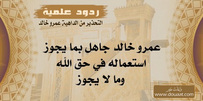 وقال عمرو خالد في كتابه المسمّى «أخلاق المؤمن» (ص176): «لا يستطيع أن يرى نفسه مهانة أمام الله».اهـ. ثم كررها عمرو في موضع ءاخر.