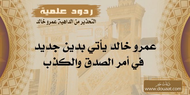 عمرو خالد جاهل باللغة وبالشرع ولذلك لم يفهم حديث الرسول صلى الله عليه وسلم فعبّر بهذا التعبير والذي جاء في الحديث أنّ من علامات الساعة أن يُكذَّب الصادق ويصدَّق الكاذب وليس أن يصبح الصادق كذوبًا أو الكاذب صدوقًا.