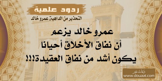 يقول عمرو خالد في كتابه المسمّى «أخلاق المؤمن» (129): «إننا لا نقصد هنا نفاق العقيدة – نفاق عبد الله بن أُبي بن سلول أو نفاق المنافقين في المدينة؛ بل – هو نفاق من نوع ءاخر وهو نفاق الأخلاق وأحيانًا يكون هذا النوع أشد من الآخر».اهـ.