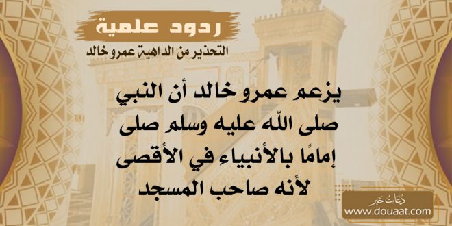 قال عمرو خالد في حلقة القدس في القناة المسماة (إقرأ): «إنما صلى النبي بالأنبياء إمامًا؛ لأنه صاحب المسجد الأقصى وصاحب البيت في الفقه هو الذي يصلي في بيته إمامًا؛ لأنه إن صلى غيره (ما يصحش)».