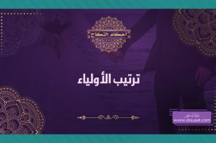 الآن ننتقل إلى ذكر ترتيب الأولياء. وأَوْلَى الولاة يعنى أحق الأولياء بالتزويج الأب فإذا كان الأب موجوداً وكان أهلاً لا يصحُ أن يعقِدَ غيرُه. ثم يلى الأب الجد أبو الأب. أما أبو الأم فلا ولاية له. ثم يليه الأخ للأب والأم أي الأخ الشقيق. ثم الأخُ للأب. ثم ابنُ الأخ الشقيق . ثم ابن الأخ للأب ثم العم الشقيق ثم …