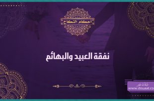 النوع الثاني من أنوتع النفقة نفقةُ الرَّقيق يدخُلُ فيها نحو أجرة الطبيب له وثمن الدواء، هذه النفقة واجبة لحديث مسلم أن رسول الله صلى الله عليه وسلم قال للمملوكِ طعامُه وكِسوَتُه ولا يُكَلَّفُ مِنَ العَمَلِ ما لا يُطيق اهـ فمَن مَلَكَ رقيقاً وجبَ عليه نفقَتُه سواءٌ كان ذكرًا أو أنثى أو مستأجَرًا أو مُعارًا فيطعِمُه من القوت، غالب قوت أرقاء …