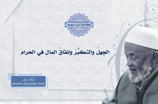 بسم الله الرحمن الرحيم الحمدُ للهِ ربِ العالمينَ لهُ النعمةُ وله الفضلُ، وأشهدُ أنْ لا إلهَ إلا اللهُ وحدَهُ لا شريكَ له وأشهدُ أن محمدًا عبدُهُ ورسولُهُ أما بعدُ: فإنَّ اللهَ تباركَ وتعالَى يقولُ في كتابِهِ العزيزِ القرءانِ الكريمِ: ﴿ومَنْ يَتَعَدَّ حدودَ اللهِ فقد ظَلَمَ نفسَهُ﴾ “سورة الطلاق /ءاية 1” ورُوّينَا في جامِعِ الترمذِيّ أن رسولَ اللهِ صلى اللهُ عليهِ …