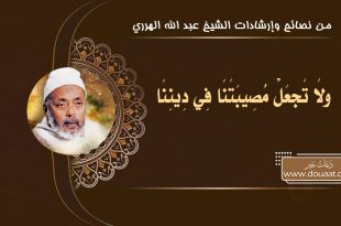 قال المحدث الشيخ عبد الله الهرري الحبشي رحمه الله ونفعنا به إنَّ المصيبةَ في المالِ والمصيبةَ في الجسمِ اللهُ تبارك وتعالى يُعوِّضُ المؤمنَ بِهَا الثوابَ وتكفيرَ السيئاتِ ورفعَ الدرجاتِ. أما المصيبةُ في الدينِ فتوجب لصاحبِهَا الهلاك في الآخرةِ لذلكَ قالَ رسولُ اللَّهِ صلَّى اللَّهُ عليه وسلَّم في دعاءٍ كانَ يدعُو بهِ: “ولاَ تَجعَلْ مُصِيبَتَنَا فِي دِينِنَا”. فالمصيبةُ في الدنيَا مع …