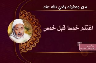 بسم الله الرحمن الرحيم قال المحدّث الشيخ عبد الله الهرريّ رضي الله عنه وأرضاه: أذكّركم قول رسول الله صلّى الله عليه وسلّم: “اغتنم خمسًا قبل خمس حياتك قبل موتك وصحّتك قبل سقمك وشبابك قبل هرمك وغناك قبل فقرك وفراغك قبل شغلك”. حديث صحيح رواه الحاكم وصحّحه. اغتنموا الخيرات في الأيام القلائل للأيام الطويلة، قال الله تعالى: “وما الحياة الدنيا إلا …