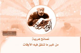 من نصائح العلامة المحدث الشيخ عبد الله الهرري غفر الله له ولوالديه من خير ما تنفق فيه الأوقات إنَّ مِن خَيْرِ مَا تُنفَقُ فيهِ الأوقات إحياءُ العِلمِ النَّافِعِ ، وَالمثَابَرَةُ عَلَى نَشْرِهِ لِلكِبَارِ وَالصِّغَارِ، فَإِنَّ في ذلكَ حِفْظَ حُقُوقِ اللهِ وحقوقِ العِبَادِ ، وَأَهمُ العِلمِ العِلمُ باللهِ وبرسولهِ ، ولا ينبغي أَنْ يَكُونَ الإنسانُ قَاصِرَ الرَّغبَةِ في الازديادِ مِنَ العِلمِ …