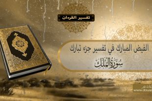 سورة الملك سورة الملك مكية في قول الجميع، وتسمى الواقية والمنجية وهي ثلاثون ءاية بسم الله الرحمن الرحيم تَبَارَكَ الَّذِي بِيَدِهِ الْمُلْكُ وَهُوَ عَلَى كُلِّ شَيْءٍ قَدِيرٌ (1) الَّذِي خَلَقَ الْمَوْتَ وَالْحَيَاةَ لِيَبْلُوَكُمْ أَيُّكُمْ أَحْسَنُ عَمَلاً وَهُوَ الْعَزِيزُ الْغَفُورُ (2) الَّذِي خَلَقَ سَبْعَ سَمَاوَاتٍ طِبَاقاً مَا تَرَى فِي خَلْقِ الرَّحْمَنِ مِنْ تَفَاوُتٍ فَارْجِعْ الْبَصَرَ هَلْ تَرَى مِنْ فُطُورٍ (3) ثُمَّ …