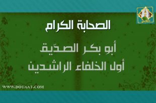 ترجمته هو أبو بكر الصديق واسمه عبد الله بن أبي قحافة عثمان بن عامر القرشي، وقيل كان اسمه في الجاهلية «عبد الكعبة» فسماه رسول الله صلى الله عليه وسلم «عبد الله»، يلتقي نسبه هو ورسول الله صلى الله عليه وسلم في مرة بن كعب، وأمه أم الخير سلمى (وقيل ليلى) بنت صخر بن عامر وهي بنت عم أبي قحافة. وُلد …
