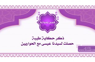 بسم الله الرحمن الرحيم عيسى عليه السلام كان معه اثنا عشر من المؤمنين الاقوياء حصل على اثني عشر شخصا يقال لهم الحواريون . ومما يروى عنه من الحكايات الطيبة أنه كان ذات يوم سائرا مع هؤلاء الجماعة الحواريين فأتوا على جيفة كلب أنتنت فهؤلاء الذين معه أخذوا بآنافهم حتى اجتازوا الكلب , أما سيدنا عيسى لم يفعل فقالوا بعد أن …
