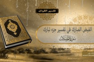 سورة المرسلات سورة المرسلات مكية، وهي خمسون ءاية بسم الله الرحمن الرحيم وَالْمُرْسَلاتِ عُرْفًا (1) فَالْعَاصِفَاتِ عَصْفًا (2) وَالنَّاشِرَاتِ نَشْرًا (3) فَالْفَارِقَاتِ فَرْقًا (4) فَالْمُلْقِيَاتِ ذِكْرًا (5) عُذْرًا أَوْ نُذْرًا (6) إِنَّمَا تُوعَدُونَ لَوَاقِعٌ (7) فَإِذَا النُّجُومُ طُمِسَتْ (8) وَإِذَا السَّمَاءُ فُرِجَتْ (9) وَإِذَا الْجِبَالُ نُسِفَتْ (10) وَإِذَا الرُّسُلُ أُقِّتَتْ (11) لأَيِّ يَوْمٍ أُجِّلَتْ (12) لِيَوْمِ الْفَصْلِ (13) وَمَا أَدْرَاكَ …