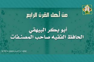ترجمته هو الإمام الكبير الفقيه الحافظ الأصولي النحرير الزاهد الورع الشيخ أبو بكر أحمد بن الحسين بن علي بن عبد الله بن موسى البيهقي الخُسرَوْجردي (نسبة إلى خُسْرَوْجِرد القرية التي ولد فيها). أخذ علم الأصول على مذهب الإمام الأشعري واشتغل بالتأليف فكثرت مصنفاته وصار أوحد زمانه في الحديث والفهم والقريحة والزهد. ولد في شعبان سنة ثلاثمائة وأربع وثمانين هجرية بقرية …